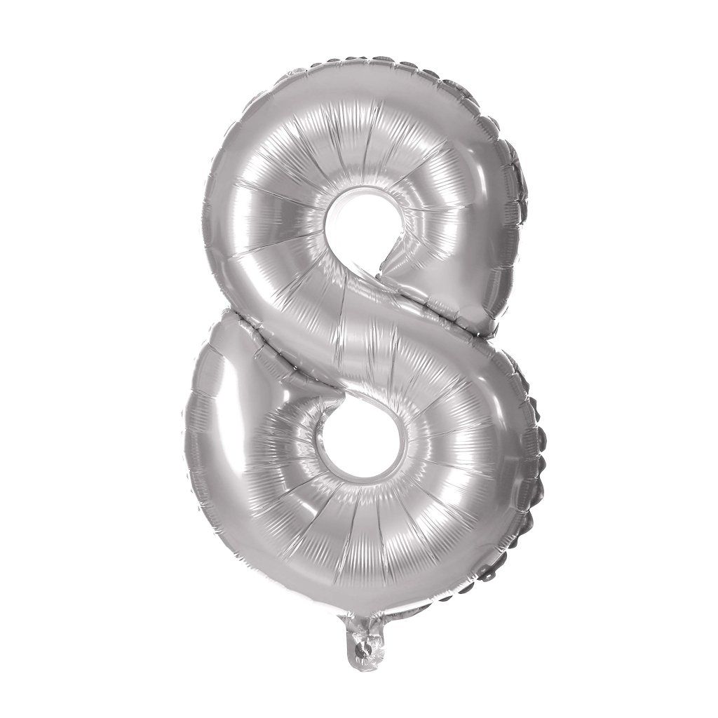 Balónik fóliový TORO číslica 8 30cm strieborný