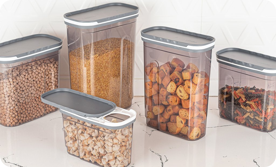 Kto to nepozná – prinesiete z obchodu balík múky, položíte ho do špajze a za pár dní už je vrecko natrhnuté, polovica obsahu vysypaná av horšom prípade aj nevítaní návštevníci v podobe molí. Rovnako to dopadá s ryžou, cestovinami alebo šošovkou. Výsledok? Neprehľadná skriňa, rozsypané zásoby a žiadna radosť z varenia. Pritom riešenie je jednoduché: násypné dózy, ktoré urobia z chaosu systém.