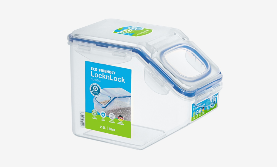 - cereálie alebo müsli (veľké rodinné balenie) → dóza okolo 3–4 l, ktorá sa dobre drží pri sypaní.
