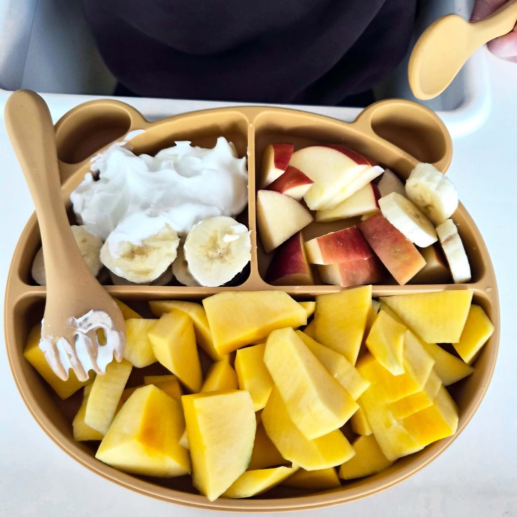 Mäkký a pružný materiál je šetrný k citlivým ďasnám aj prvým zúbkom a zároveň dostatočne pevný, aby sa s príbormi dobre naberalo jedlo. Ergonomický tvar je prispôsobený malým detským ručičkám, takže sa príbory ľahko držia a podporujú dieťa v prvých pokusoch o samostatné stolovanie. Vďaka jednoduchému a hravému dizajnu sa jedlo stáva príjemnou a prirodzenou súčasťou dňa – bez stresu a slzičiek.