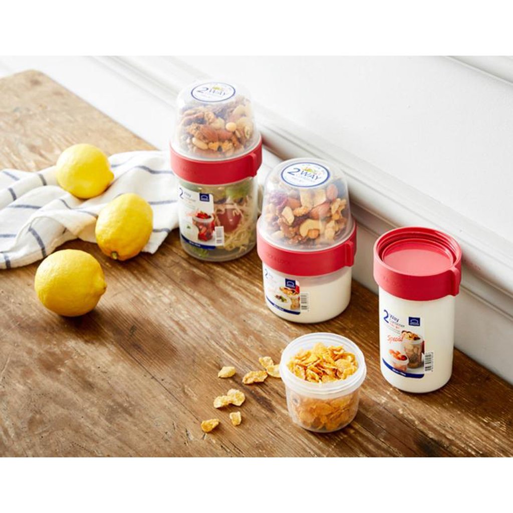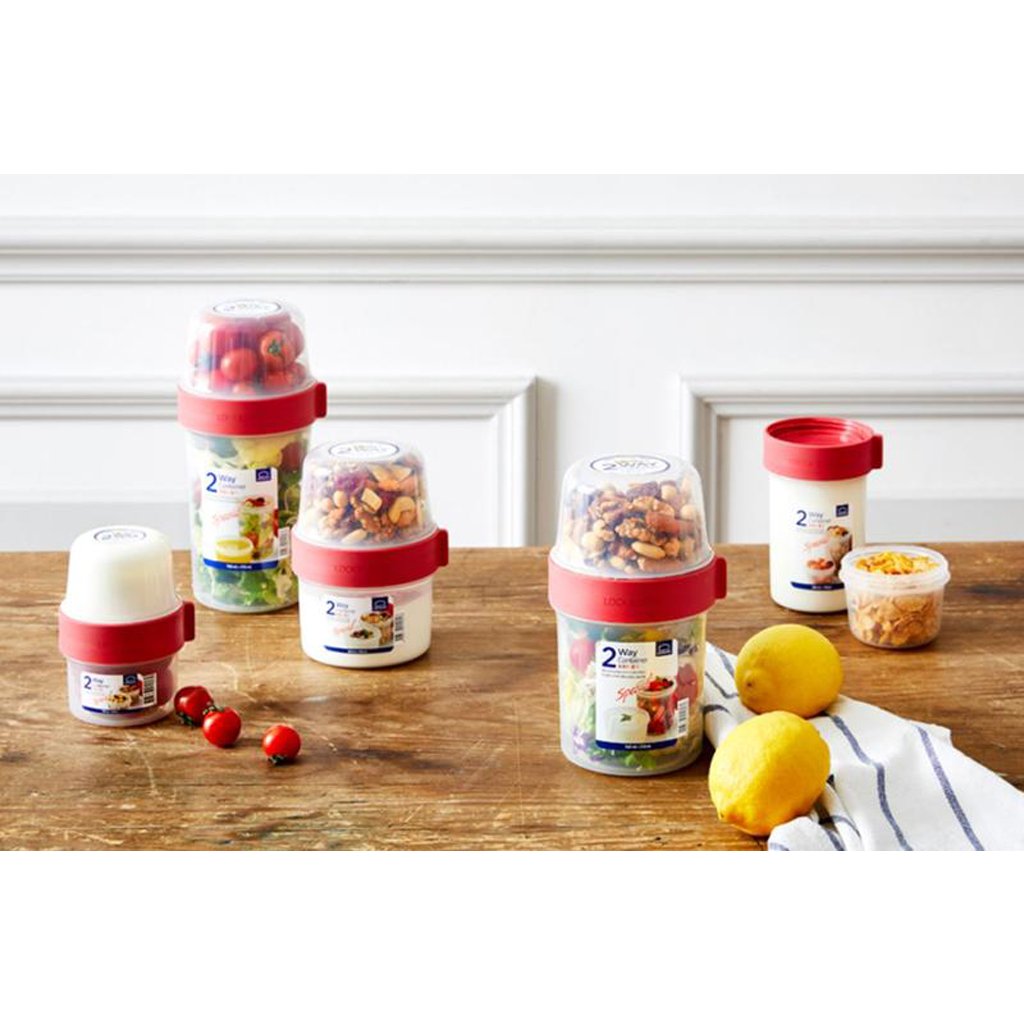 Dóza na potraviny Lock&Lock 2 v 1 je vzduchotesná a vodotesná, vhodná na prenášanie a skladovanie potravín. Je prirodzené, že počas prechádzky môžete dostať na niečo chuť. Preto by ste mali mať vždy so sebou nejaké občerstvenie. Na tento účel je dvojkomorová miska praktickým riešením, ktoré je ideálne pre takéto situácie. Miska dokonale umožňuje rozdeliť jedlo do dvoch komôr, aby sa vám nepomiešalo. Objem 870 ml (560 ml + 310 ml).Dodatočné parametre