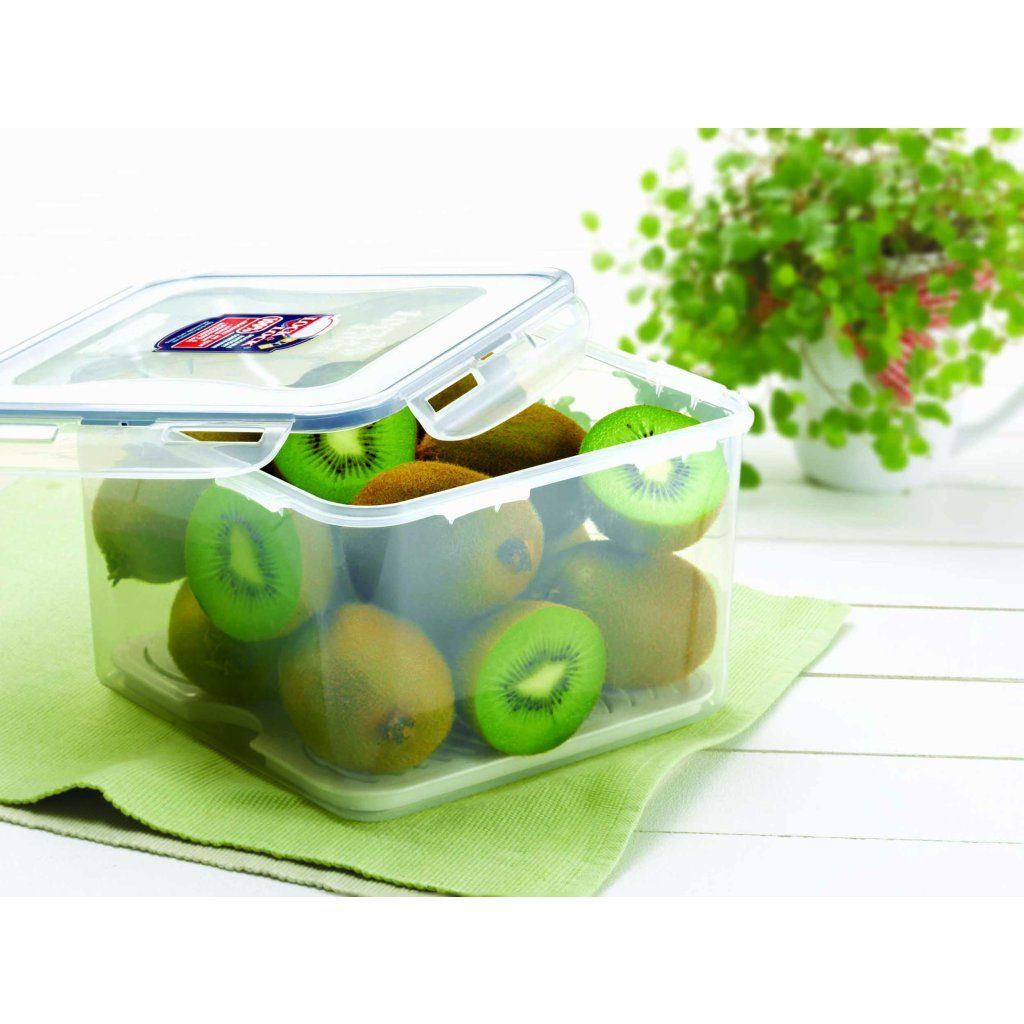 LOCKnLOCK je bezpečný a funkčný kontajner na potraviny, vyrobený z vysokokvalitného plastu, ktorý je odolný a vydrží teploty od -20 °C do +100 °C. LOCK je 100 % vzduchotesný a vodotesný. Je ideálna na skladovanie aj prenášanie potravín, pričom zabezpečuje dlhodobú čerstvosť potravín a zachováva chuť. Vhodné na použitie v chladničke, mrazničke a mikrovlnnej rúre. Štyri klipy na veku vydržia minimálne 3 000 000 otvorení!