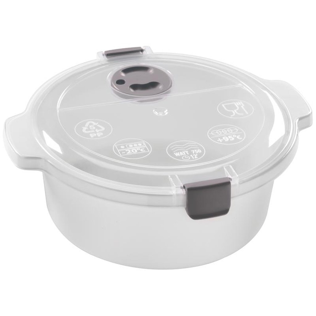 Plastová nádoba HEIDRUN je vynikajúca na rýchle rozmrazovanie, ohrievanie a varenie v mikrovlnnej rúre. Hotové pokrmy potom môžete v nádobe chladiť alebo zamraziť. Veko má otočný uzáver na odsávanie pary.