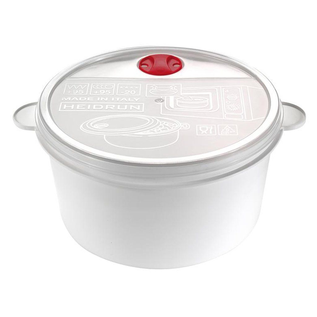 Plastová nádoba HEIDRUN je vynikajúca na rýchle rozmrazovanie, ohrievanie a varenie v mikrovlnnej rúre. Hotové pokrmy potom môžete v nádobe chladiť alebo zamraziť. Veko má otočný uzáver na odsávanie pary.
