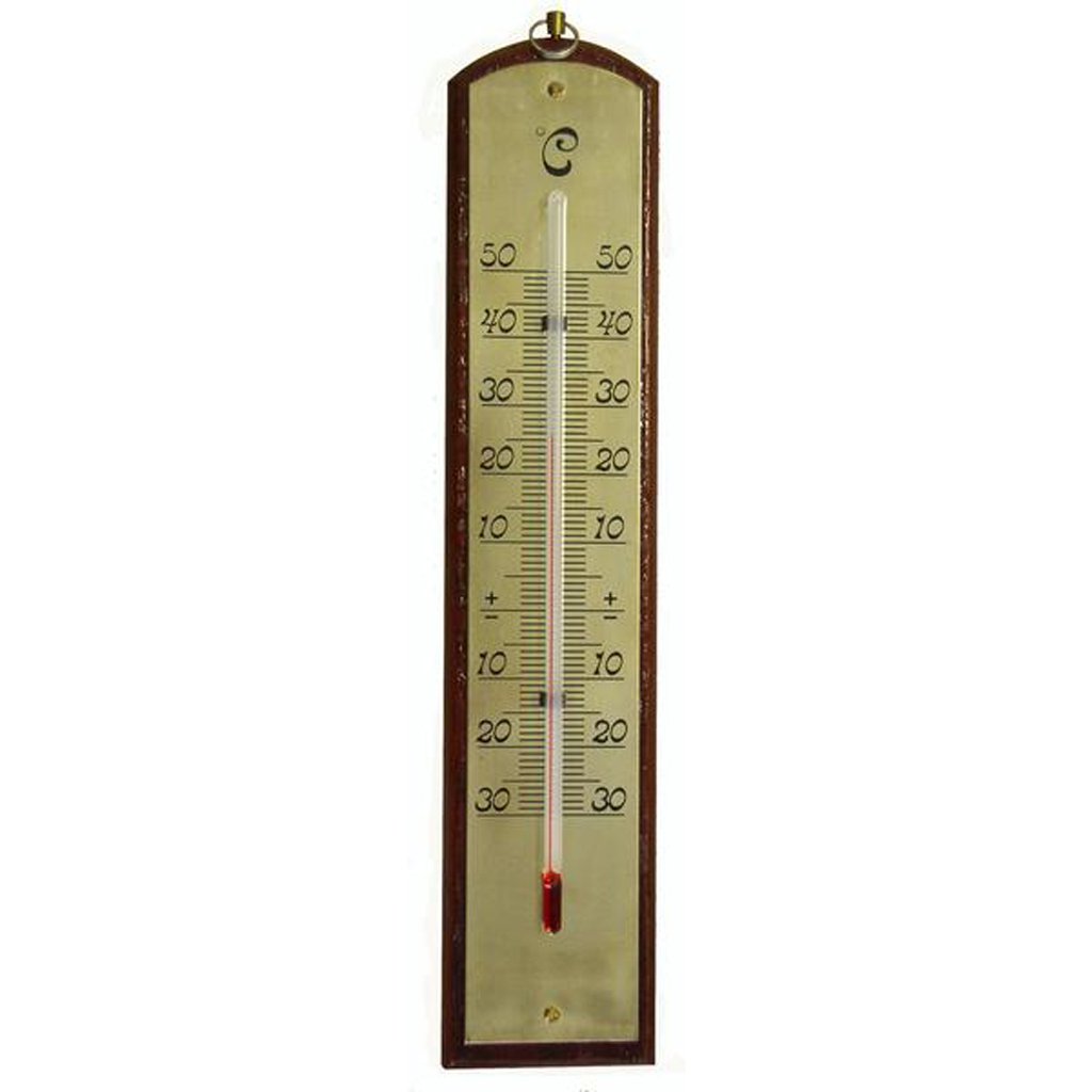 Klasický teplomer na alkohol v prírodnom drevenom vyhotovení s mosadznou tabuľkou. Teplomer je nevyhnutnou pomôckou na kontrolu teploty v miestnosti. Teplomer má stupnicu od - 30 do + 50 °C. Teplomer je vyrobený z dreva. Teplomer sa dá pripevniť pomocou skrutiek. Veľmi pekný dekoratívny teplomer. Do poznámky uveďte farbu - 2 vyhotovenia - prírodné, zlaté a tmavé prírodné, zlaté. Rozmery - 4,5 x 21 x 0,8 cm.Dodatočné parametre
