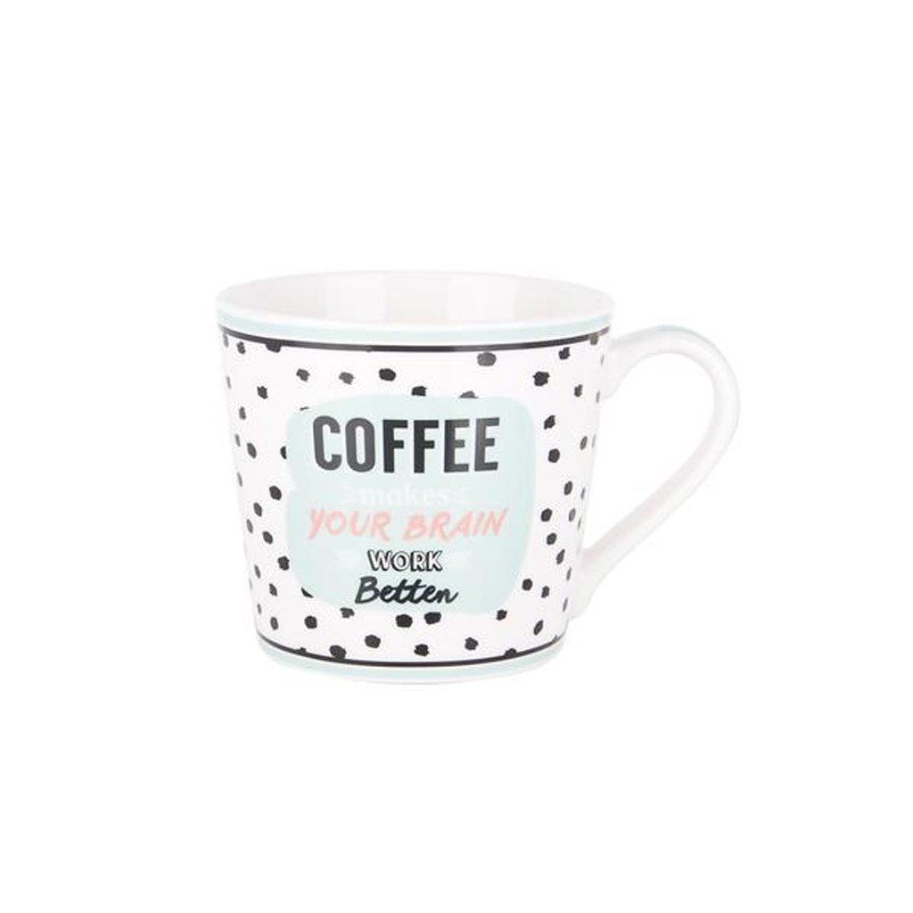 "Hrnček na kávu". Keramický hrnček je vyrobený z bielej keramiky s potlačou kávy, objem 380 ml, mix farieb.Dodatočné parametre