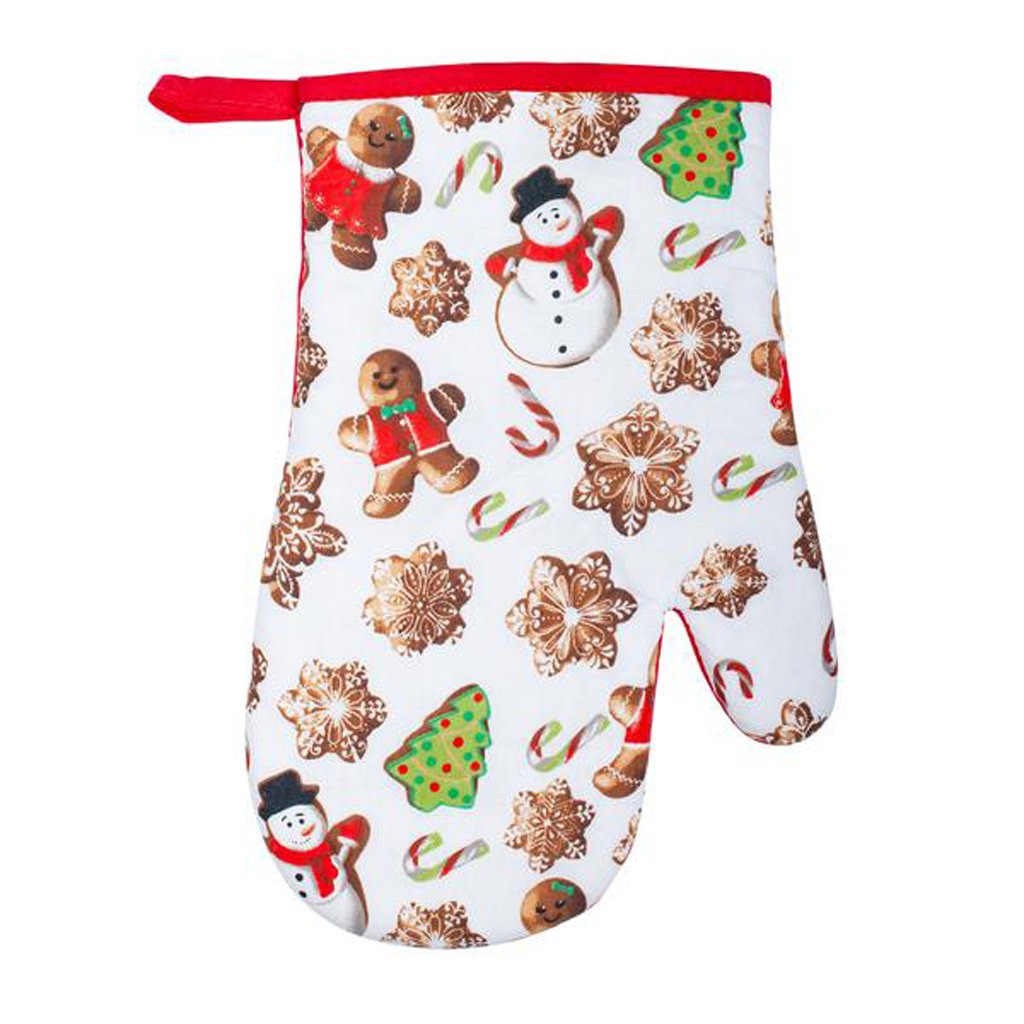Kuchynská rukavica TORO s originálnym motívom perníkov. Praktická rukavica chráni pred popáleninami na ruke a môže slúžiť aj ako podložka pod horúci riad alebo plech na pečenie. Rukavica na varenie má malé pútko na jednoduché zavesenie, môžete ju mať vždy po ruke
