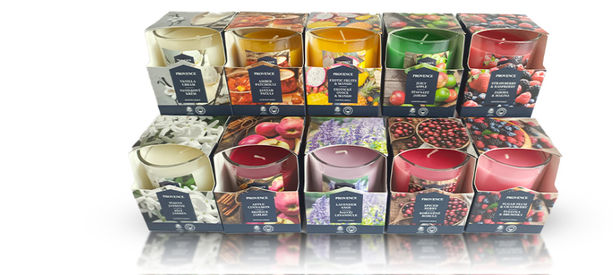 Vonná sviečka v skle PROVENCE 30 hodín lesné plody a cédrové drevo