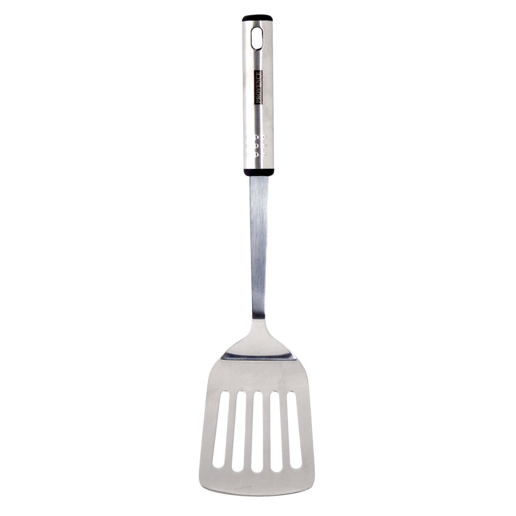 Vrecko je dostatočne dlhé, aby poskytovalo ochranu pred vysokou teplotou alebo parou. Štrbinová lopatka umožňuje jednoduché zdvíhanie a otáčanie aj jemných potravín, ako sú ryby, vajcia, palacinky alebo mäsové guľky. Prebytočná tekutina, napríklad olej, odteká cez otvory v strede.
