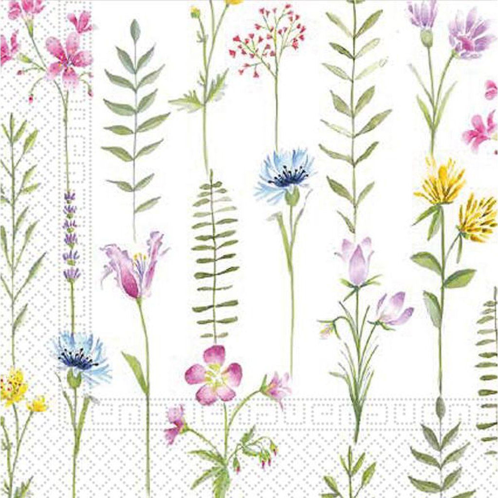 Papierové obrúsky dodávajú príjemnú atmosféru prestretému stolu pri slávnostnej večeri. Servítky sú 3-vrstvové, 20 ks v balení, motív lúčnych kvetov.