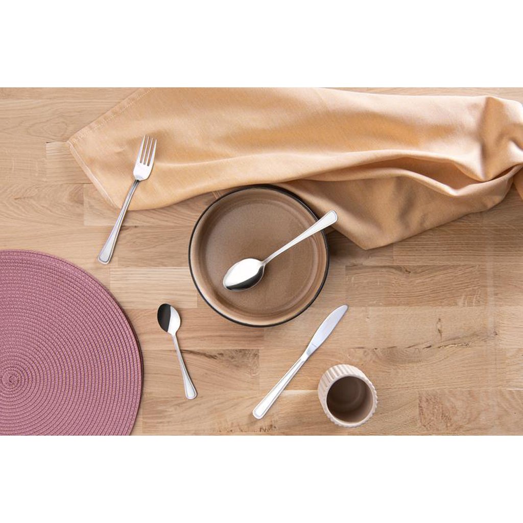 Sada príborov AMEFA 24 ks Bologna s klasickým vzorom na rukoväti. Vyrobené z prvotriednej nehrdzavejúcej ocele. Skvelé na každodenné použitie. Možno umývať v umývačke riadu. Obsahuje 6 jedálenských nožov, 6 vidličiek, 6 polievkových lyžíc a 6 čajových lyžičiek.