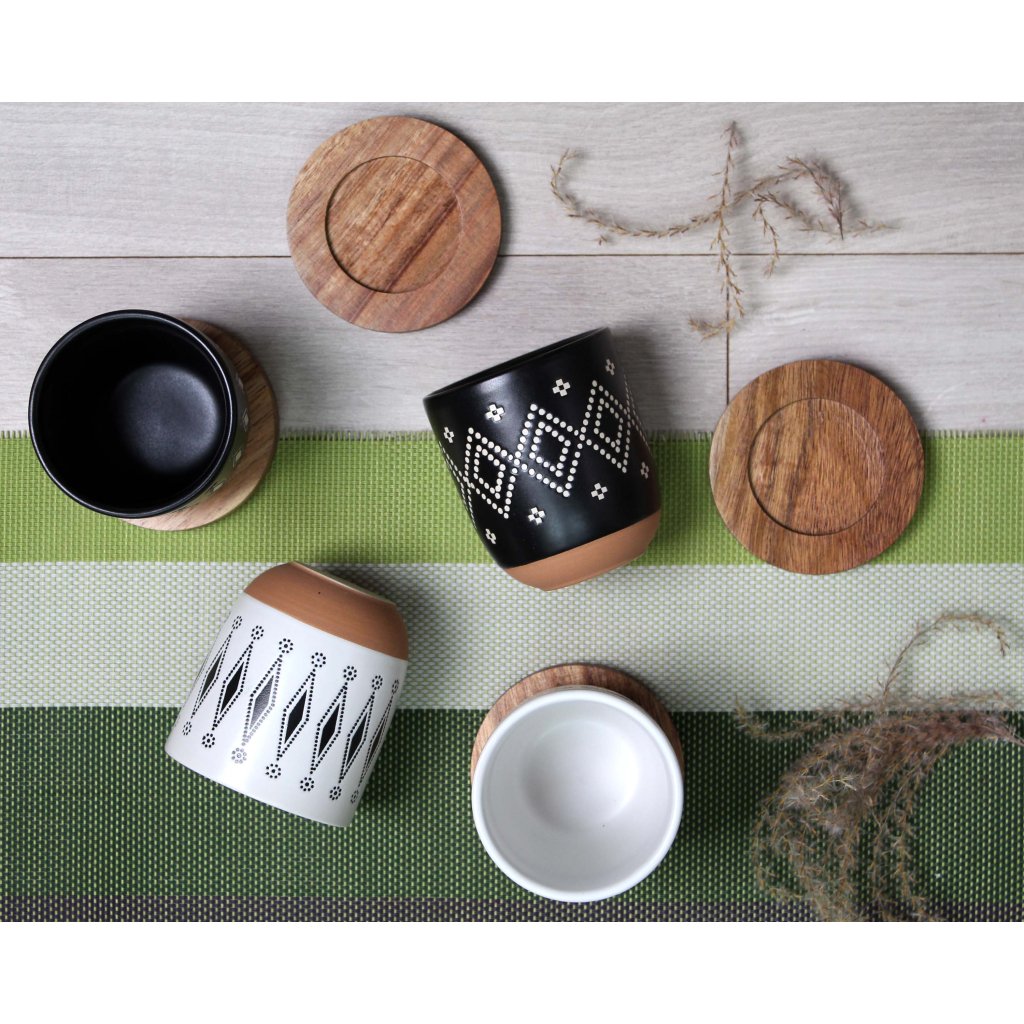 Sadu keramických šálok s drevenými podšálkami skvele doplnia ďalšie produkty pre pohodové domáce posedenie. Ak si potrpíte na rozmanitosť, určite sa pozrite na našu širokú ponuku hrnčekov z rôznych materiálov – keramických, porcelánových aj sklenených, ktoré sa hodia na každodenné použitie aj slávnostnejšie chvíle.