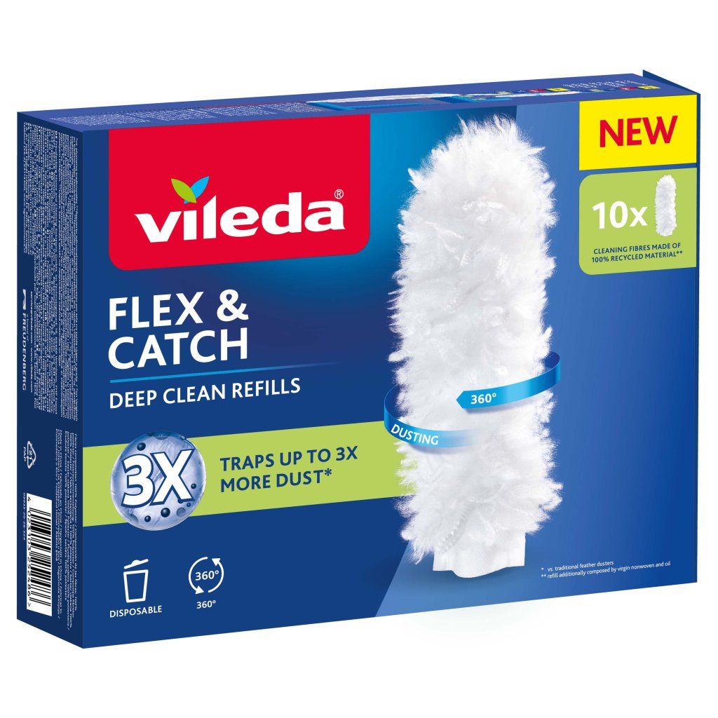 Náhradné návleky Vileda Flex & Catch sú určené pre prachovky rovnakého radu a umožňujú udržať upratovanie domácnosti stále rovnako účinný. Vďaka patentovanému dizajnu dokážu zachytiť až trikrát viac prachu ako tradičné prachovky, takže prach nielen presúvajú, ale skutočne ho zadržiavajú vo vláknach.